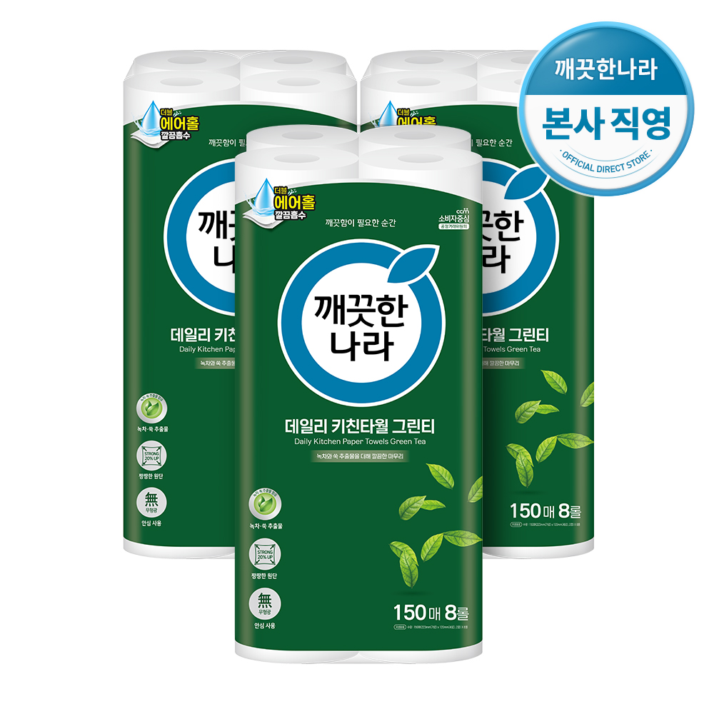 - 깨끗한나라 그린티 키친타올 150매 X 8롤 X 3팩