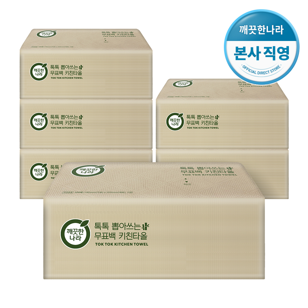 - [깨끗한나라] 톡톡 뽑아쓰는 무표백 키친타올 100매 X 6팩(1BOX)